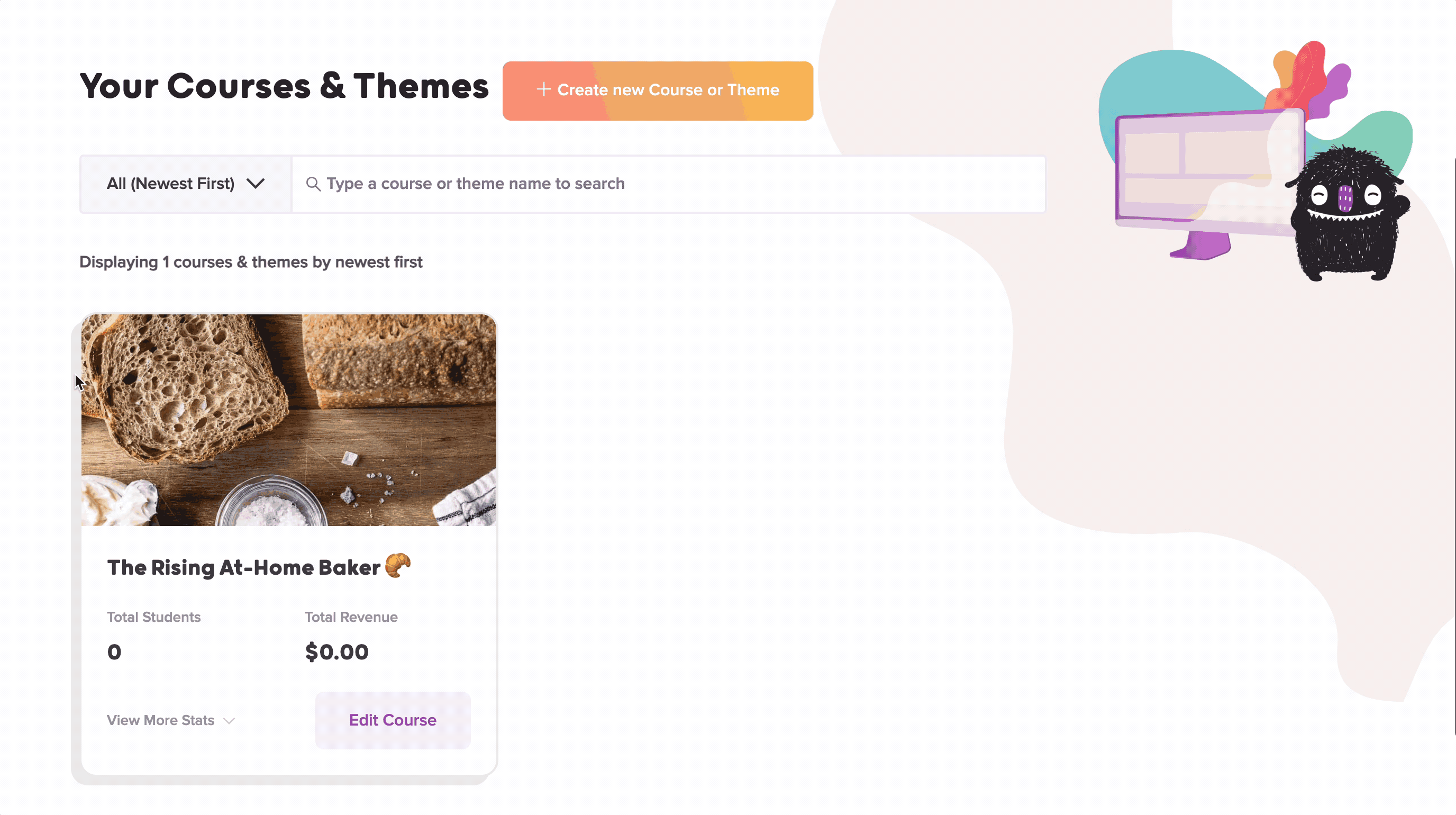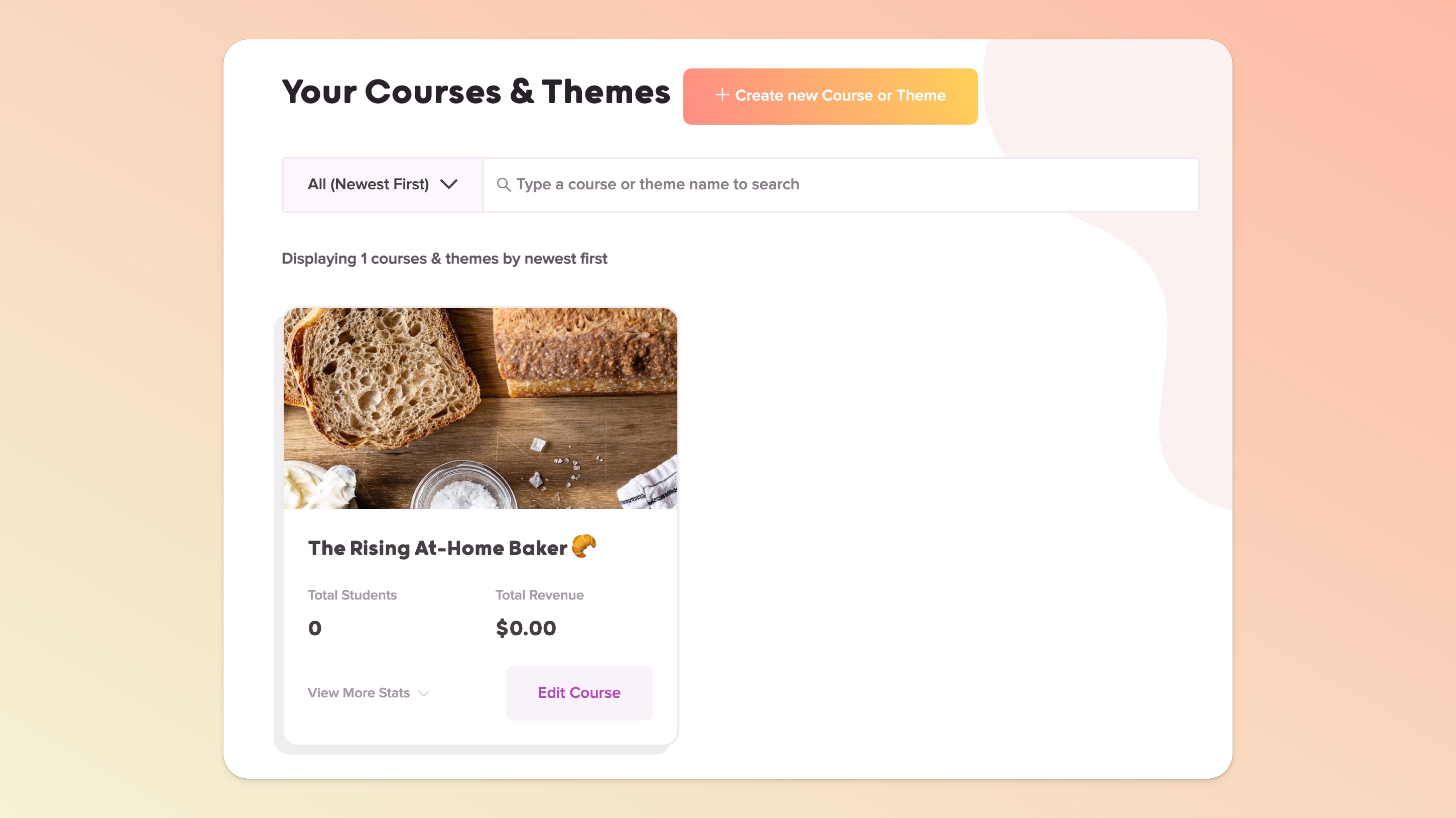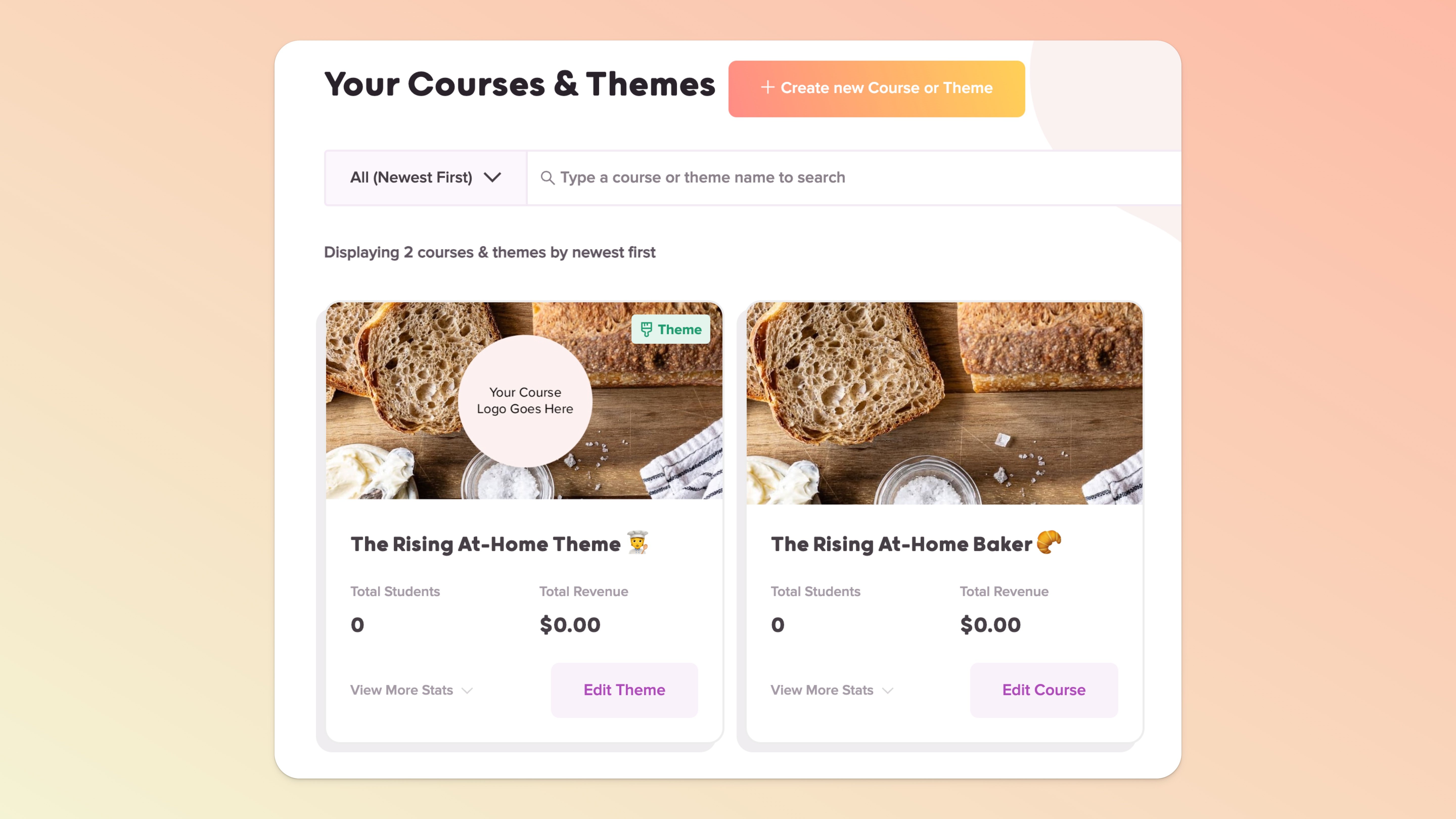 You can create a Theme of that baking course and allow your customers who want to also create courses around baking to use your course design and layout (let’s call your Theme: The Rising At-Home Baker Theme
