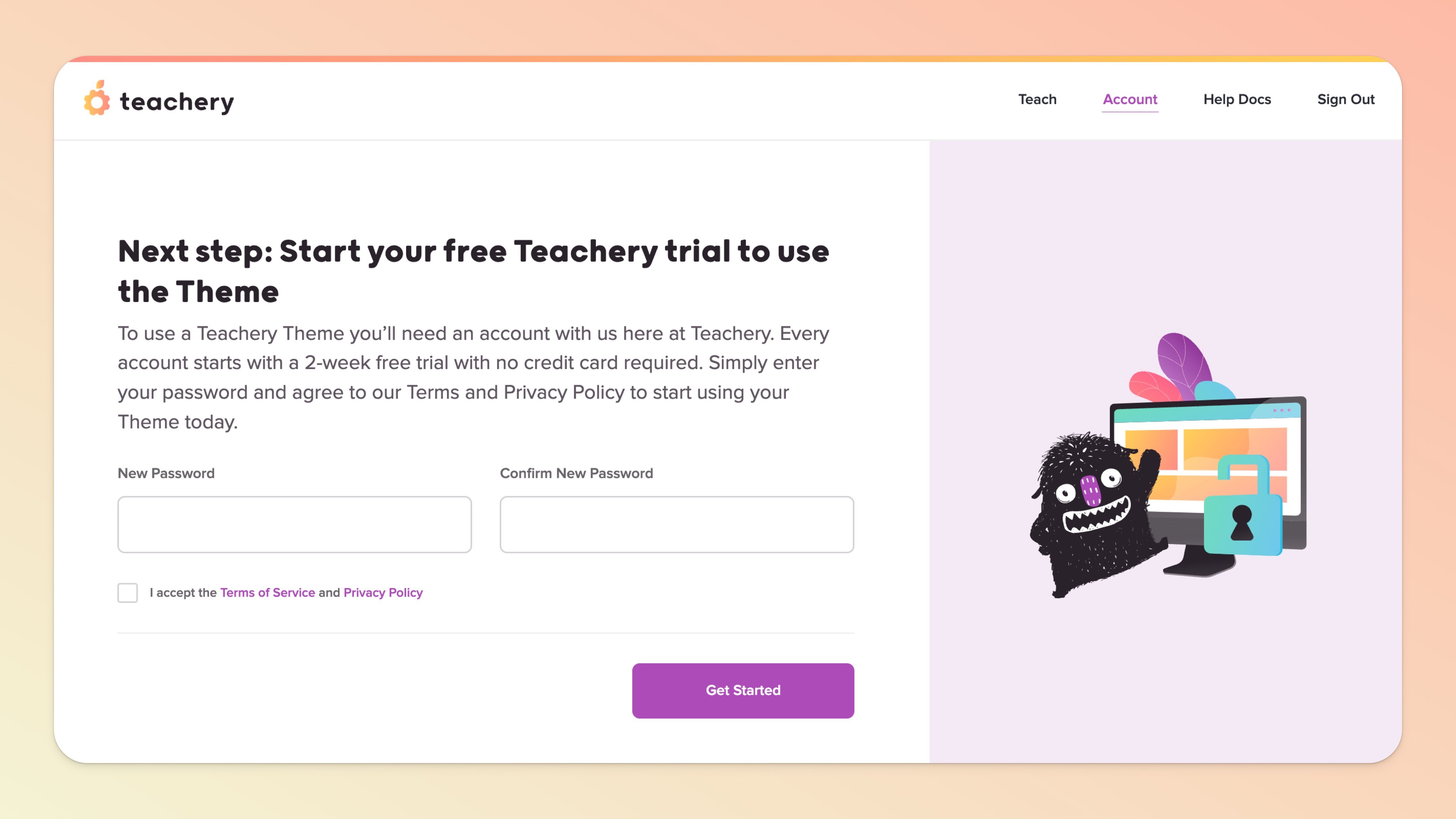 IF your customer is not yet a Teachery User, they will be prompted to start a 2-week free trial with no credit card required. After a very quick signup process, your customer will be dropped into their new Teachery Dashboard.