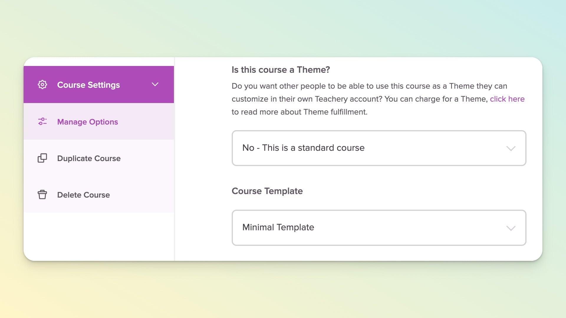 Where Themes take a slightly different turn from courses, is that when you sell a Theme to a customer, they now have possession of that Theme in their Teachery account and can create an infinite number of courses based on the Theme they bought from you.