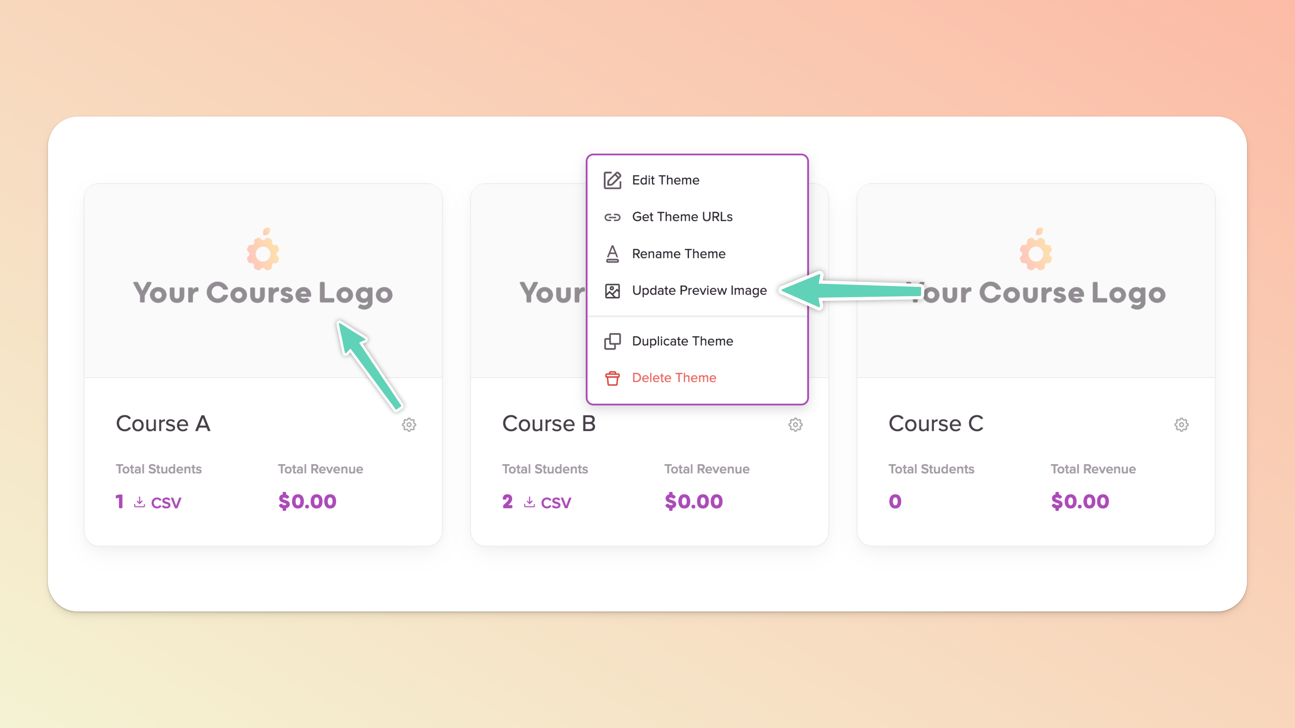 Click the gear icon inside the Course Card, beside the course name.