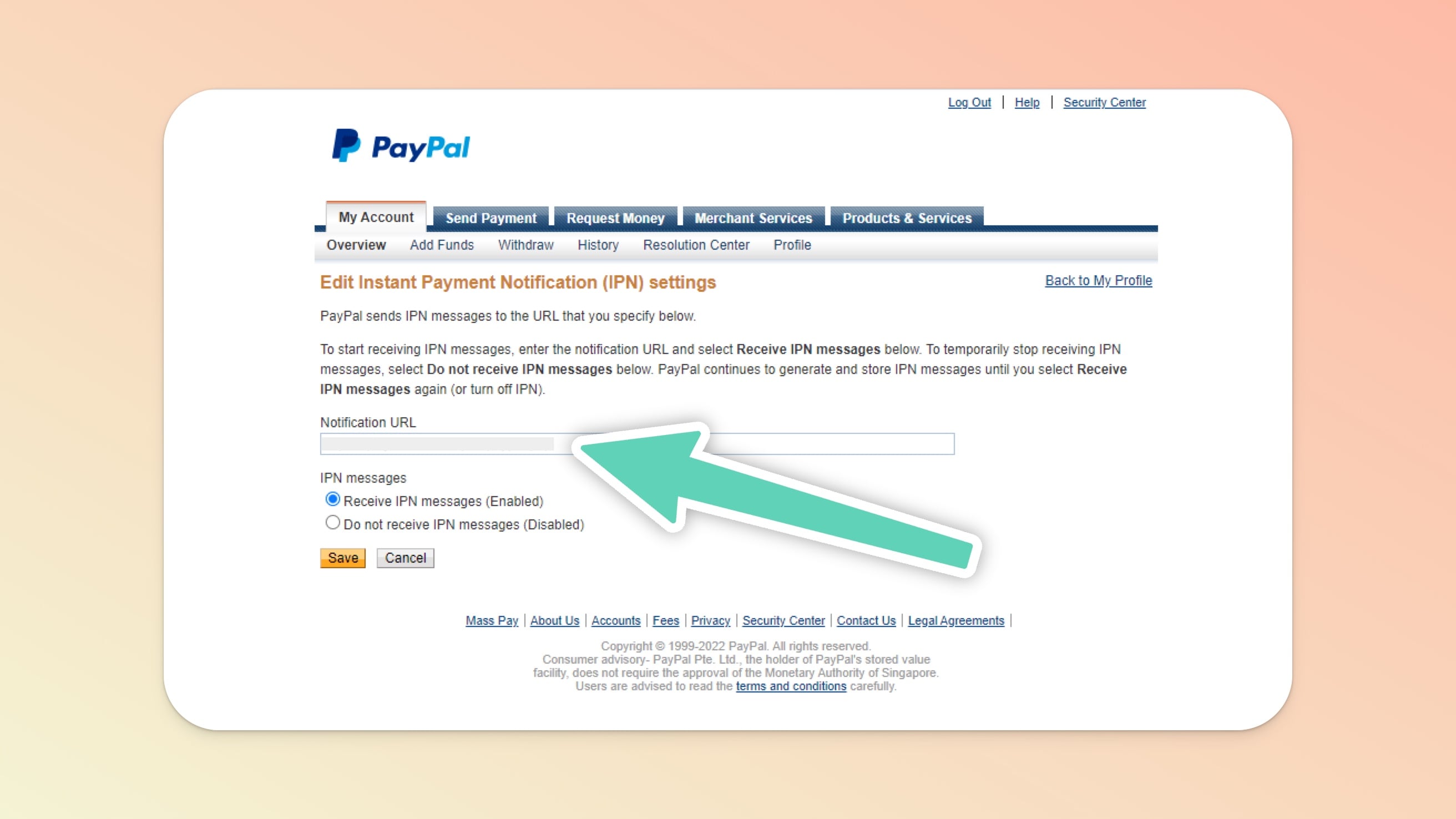 If you cannot find where to add your IPN Notification URL in your PayPal account feel free to Google it (only because PayPal changes the location of this setting from time to time). Once you add this IPN URL you'll continue.