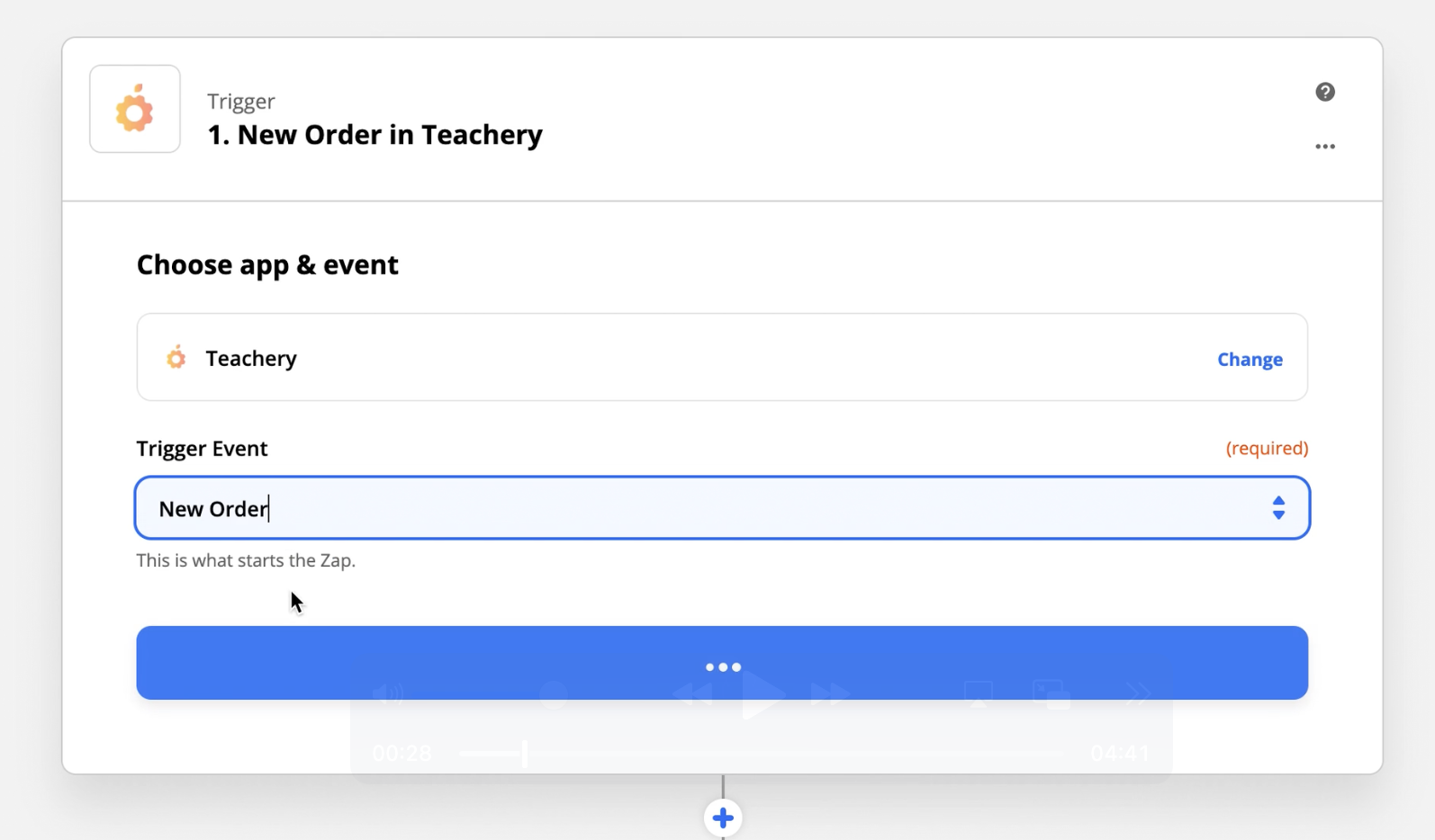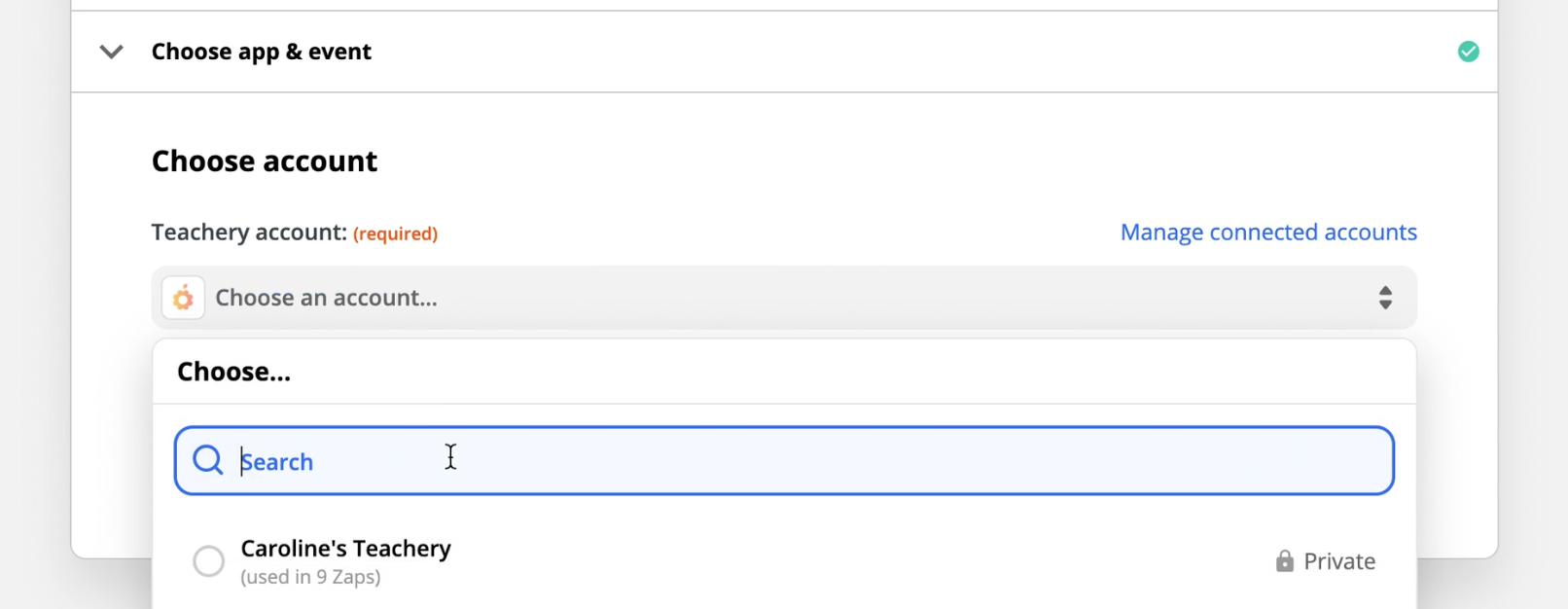 STEP #5: You're done with the first trigger of your Zap! Now let's connect your Teachery account as the second step in the Zap.