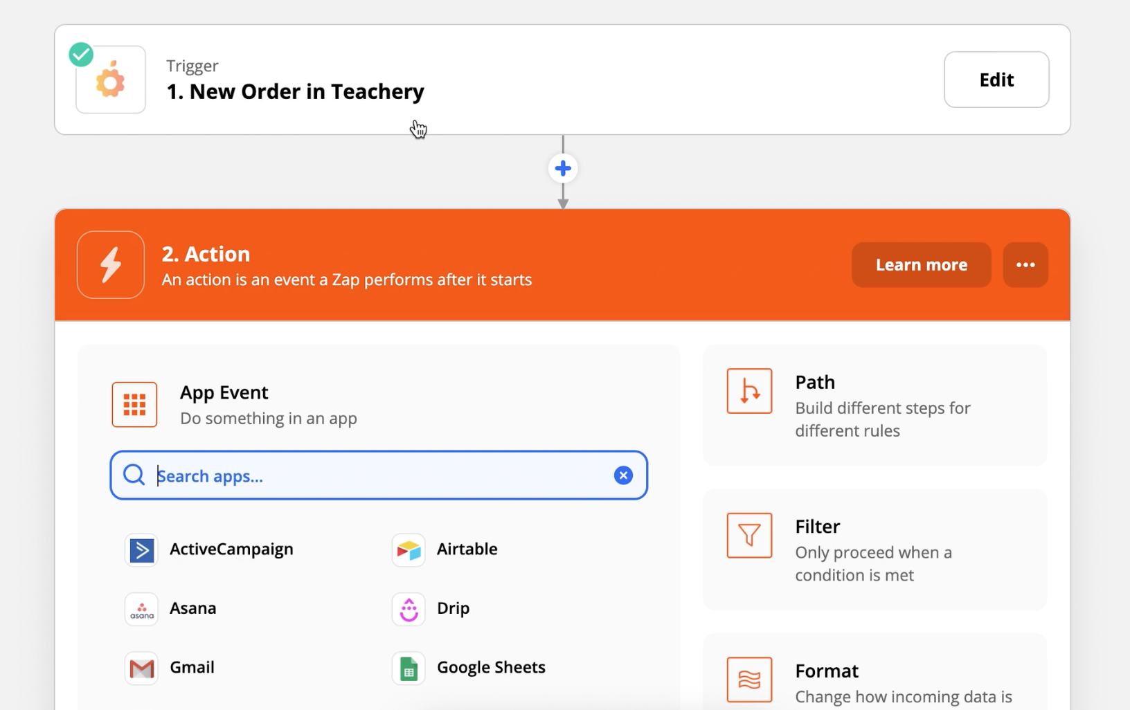 Teachery will be the FIRST step in your Zap.STEP #1: In Zapier, you're going to create a new Zap and search for Teachery: