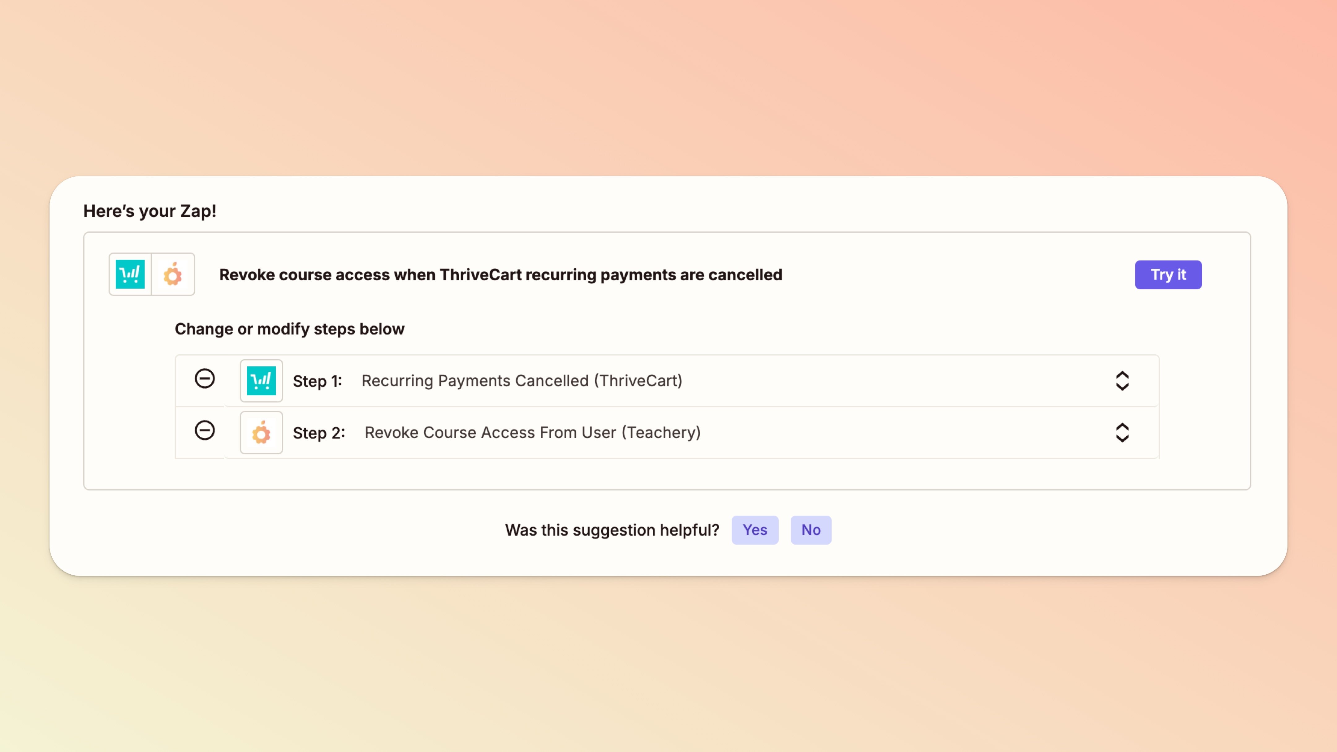 For example, if you take payment outside of Teachery and your customer's payment subscription is canceled, you can set up a Zap that will revoke their course access immediately.