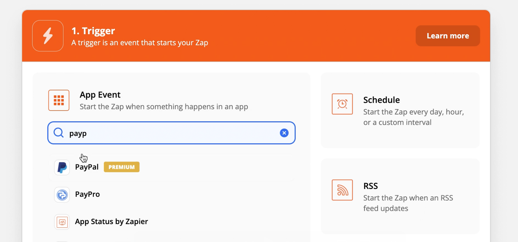 NOTE: Many apps in Zapier are able to be used on the free Zapier account but PayPal is one that requires a paid Zapier account.