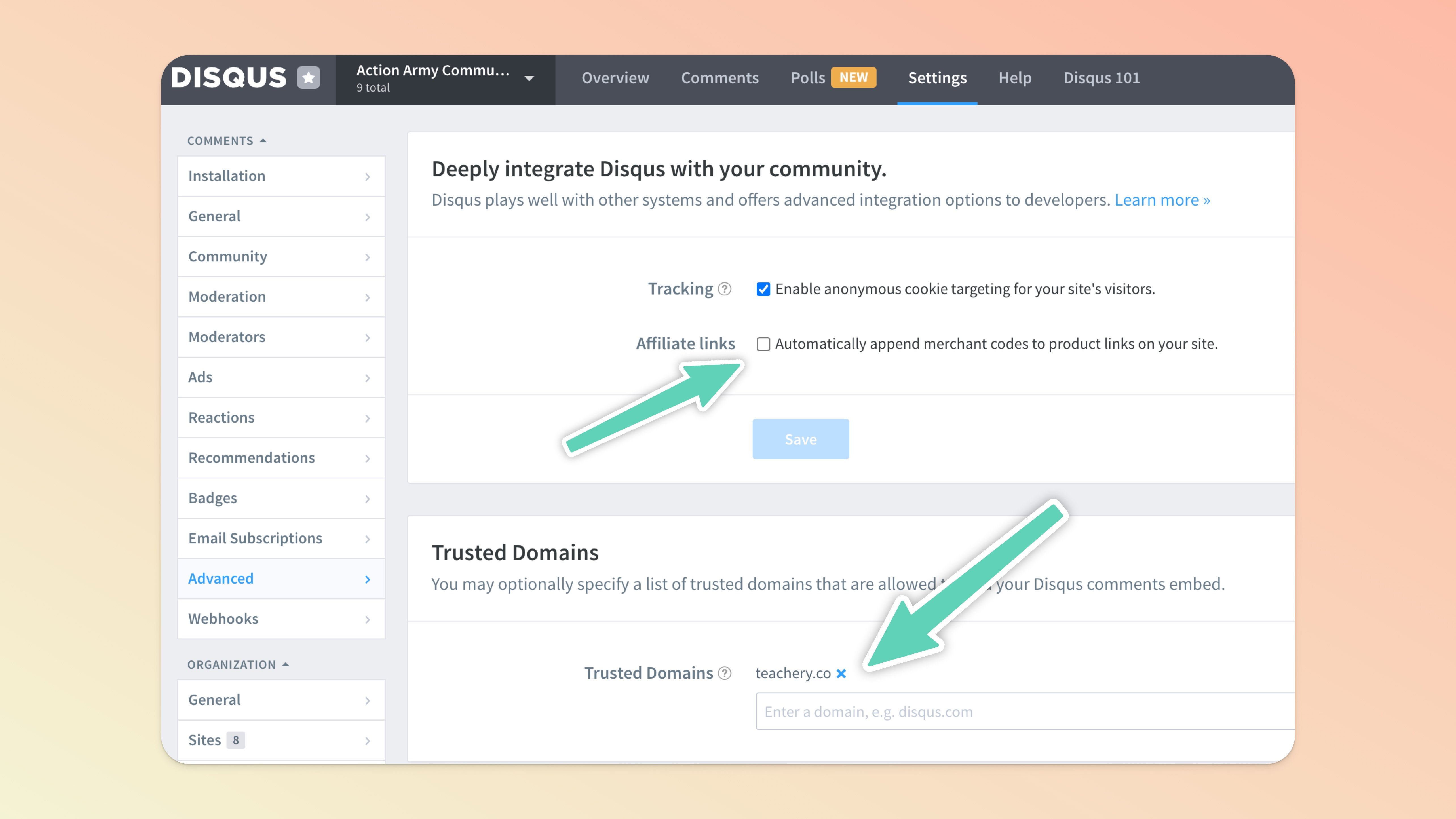 IMPORTANT: Change Advanced Settings in DisqusThere have been a few isolated issues where random links are being added to comments and this is easy to fix. Here are the steps to take: