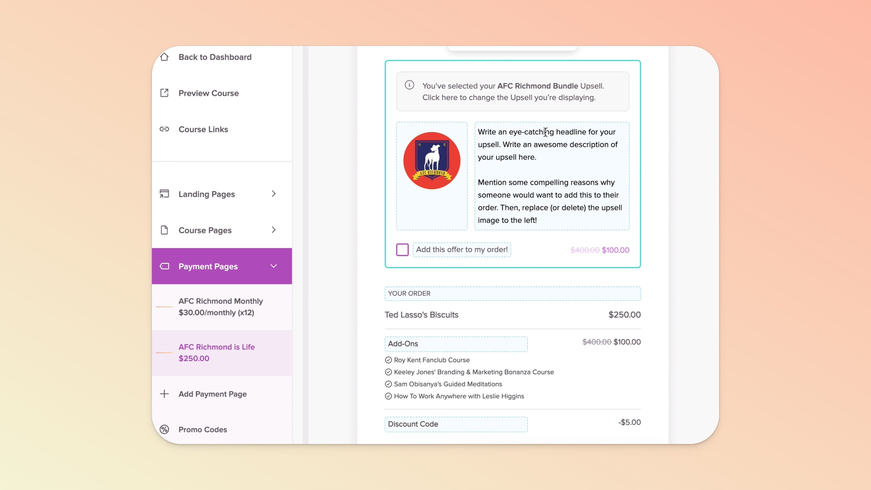 In this help doc, we'll cover how to create a bundle of courses using an Upsell!