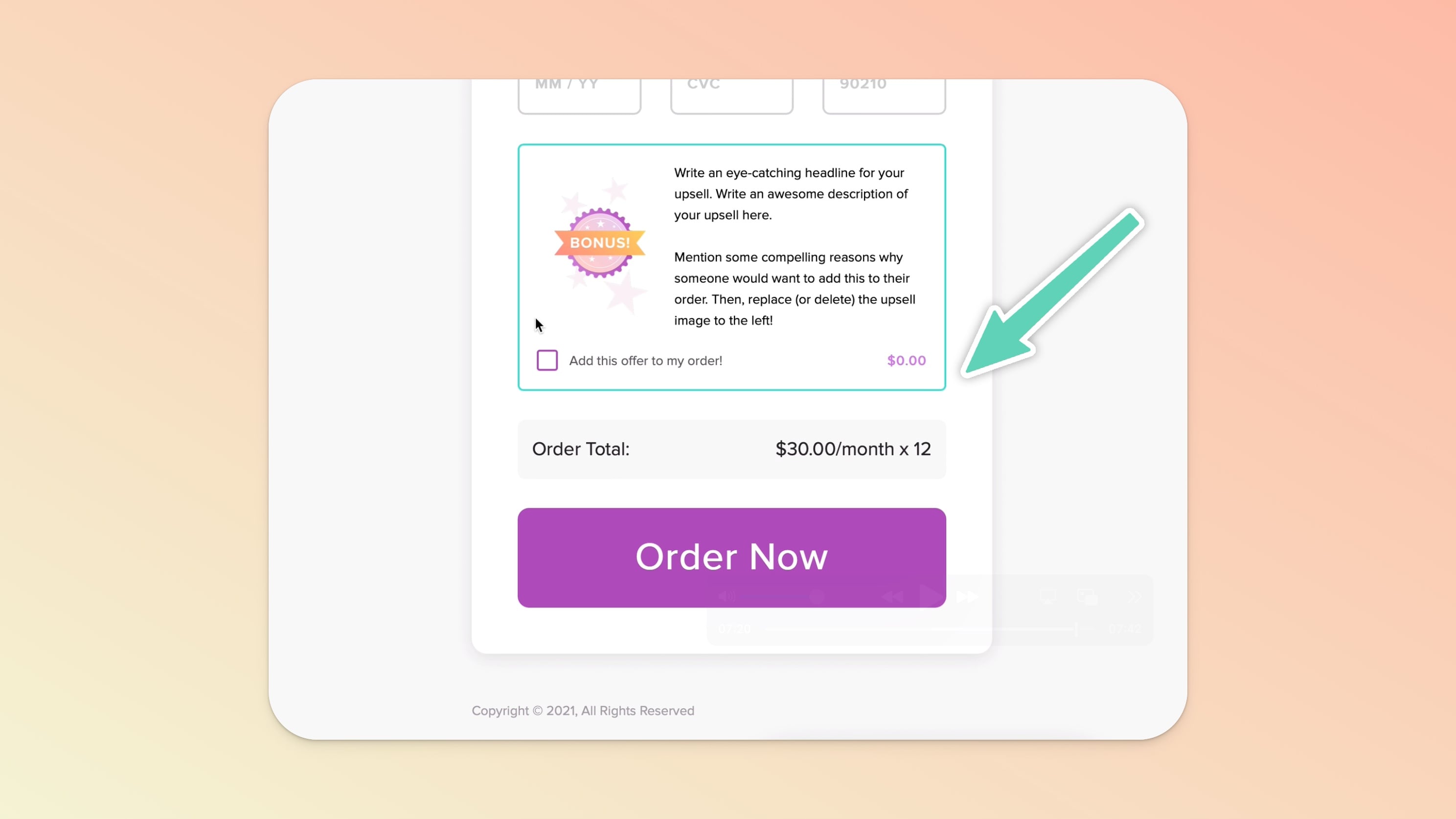 Grab the URL for your Recurring Payment Page, share it with your customers, and when a customer purchases (and checks the Upsell box!) they get your Upsell Bundle - WAHOOOO!
