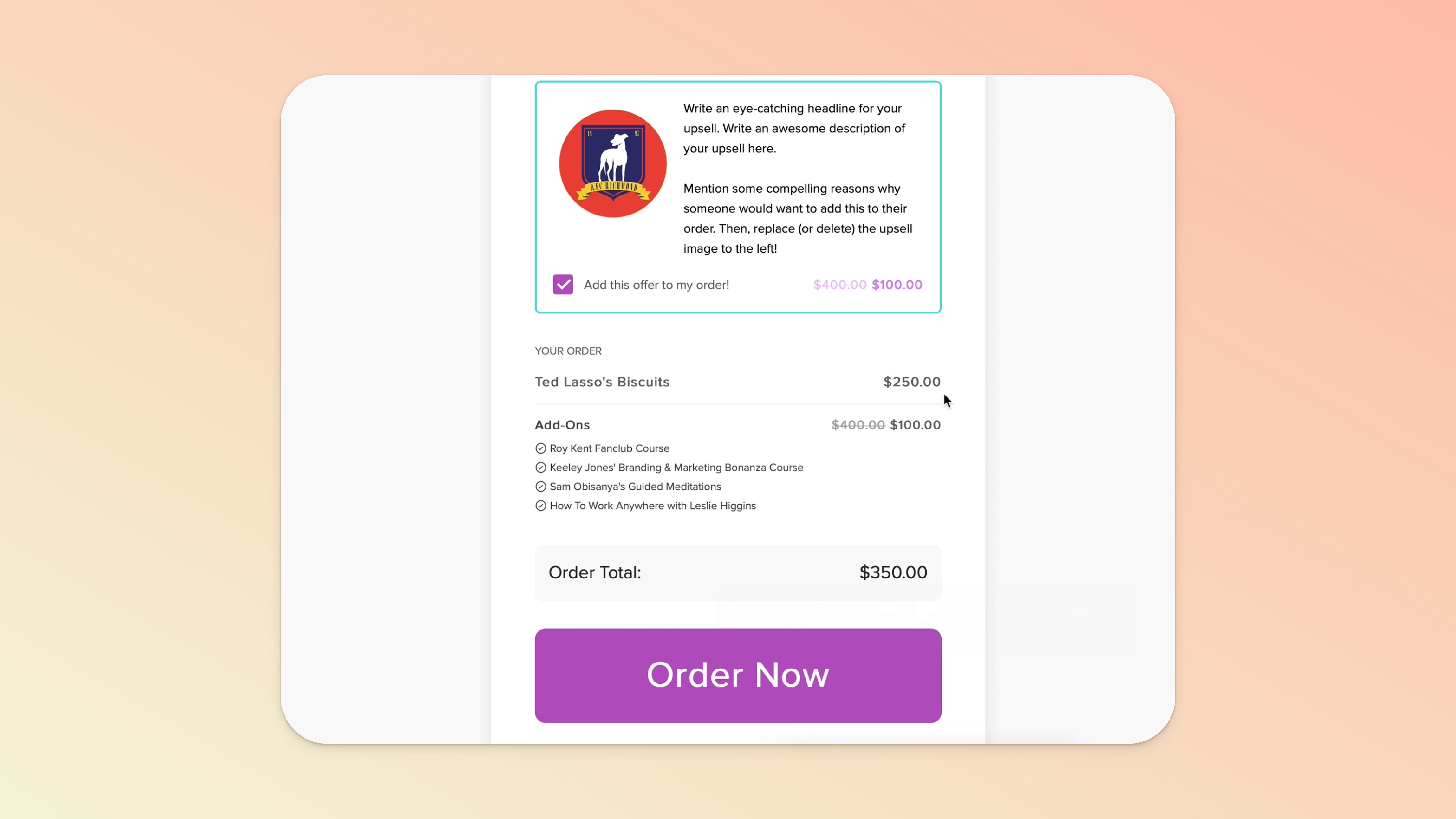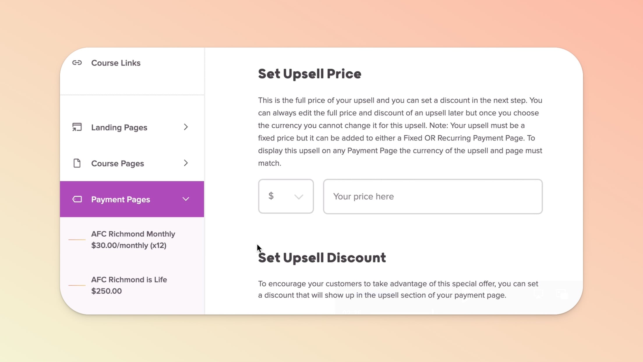 You can charge $X for your Main Course (ex: $250) + $X for your Upsell (ex: $100)