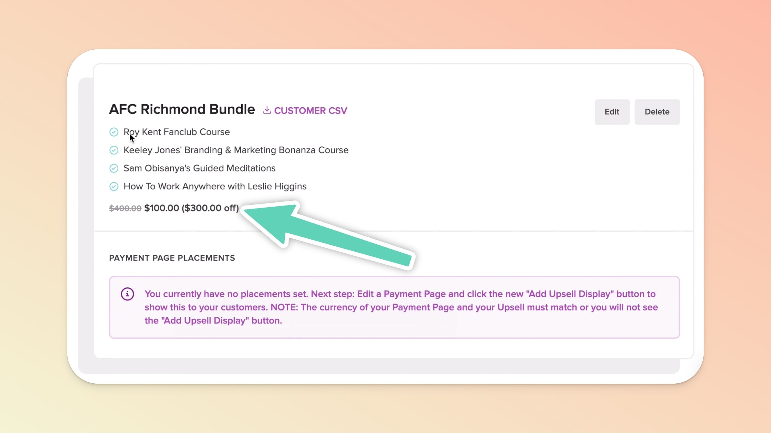 Upsell Price): Use the Upsell Price to sell your bundle of courses.For this first choice, you're going to use the Upsell itself to price your bundle of courses. Here's our example: