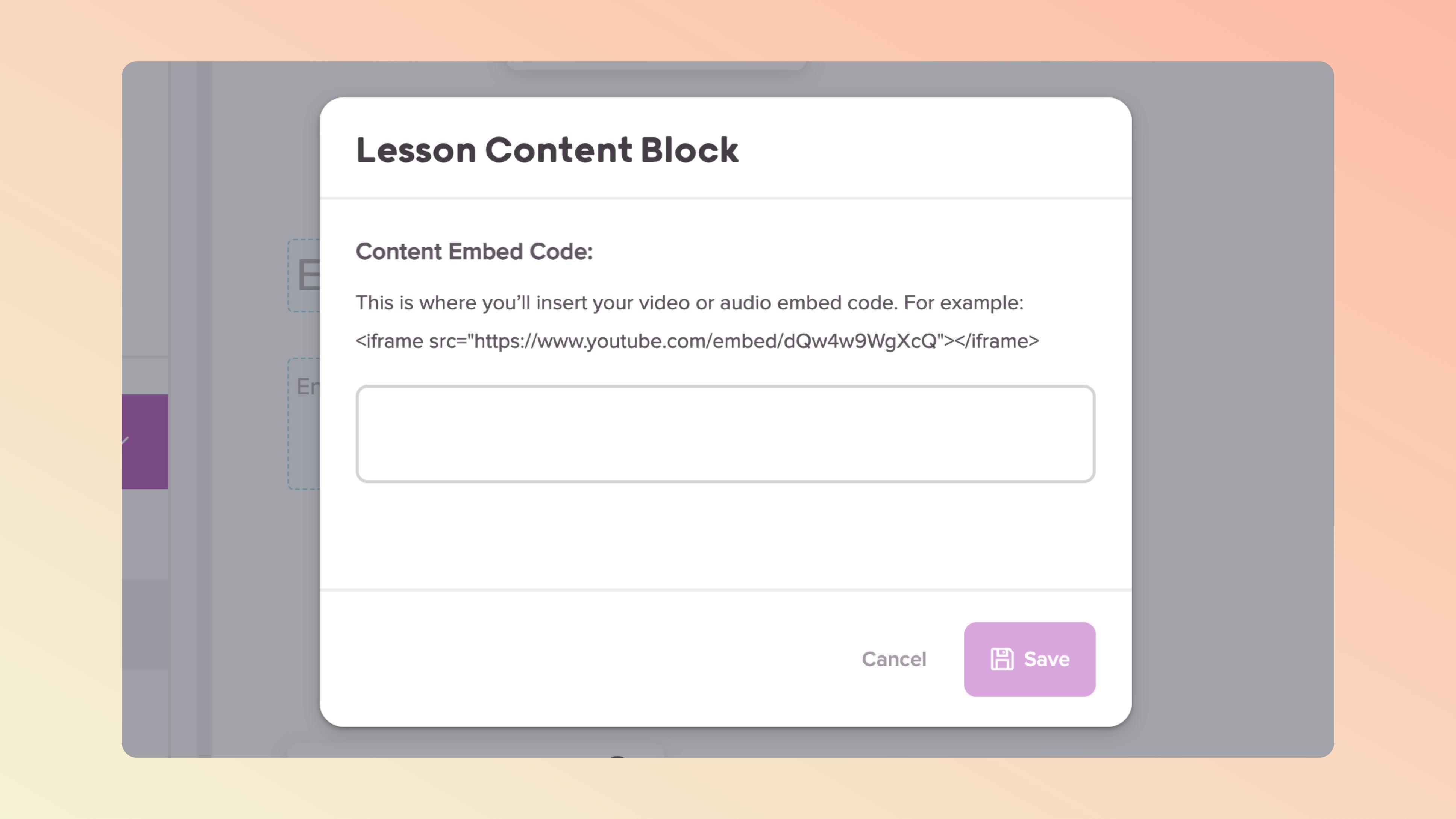 We believe you have so much more control and functionality by embedding videos from external video hosting applications like YouTube, Vimeo, Wistia, Loom, Canva, etc.