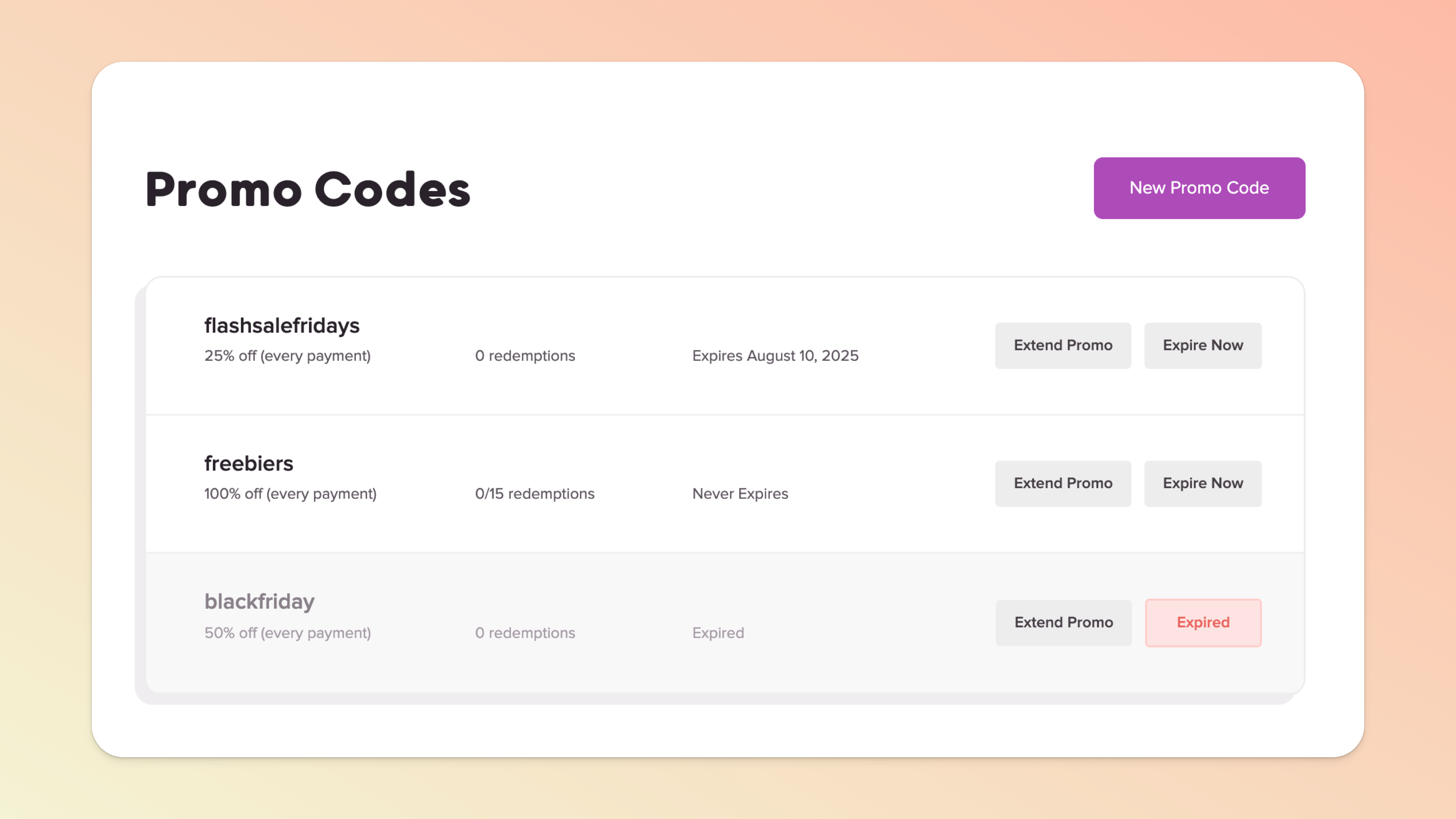 Click the "New Promo Code" button to create a new code!