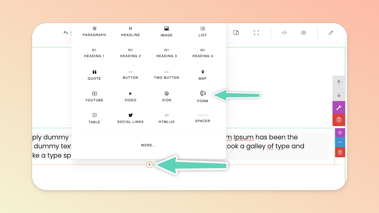️ Quickstart TipsIn the Page Builder’s main menu on the left, click the + icon and browse the wide range of sections - from FAQ, pricing, and testimonial sections to background/full-width images or videos, spacers, contact forms, and page dividers.