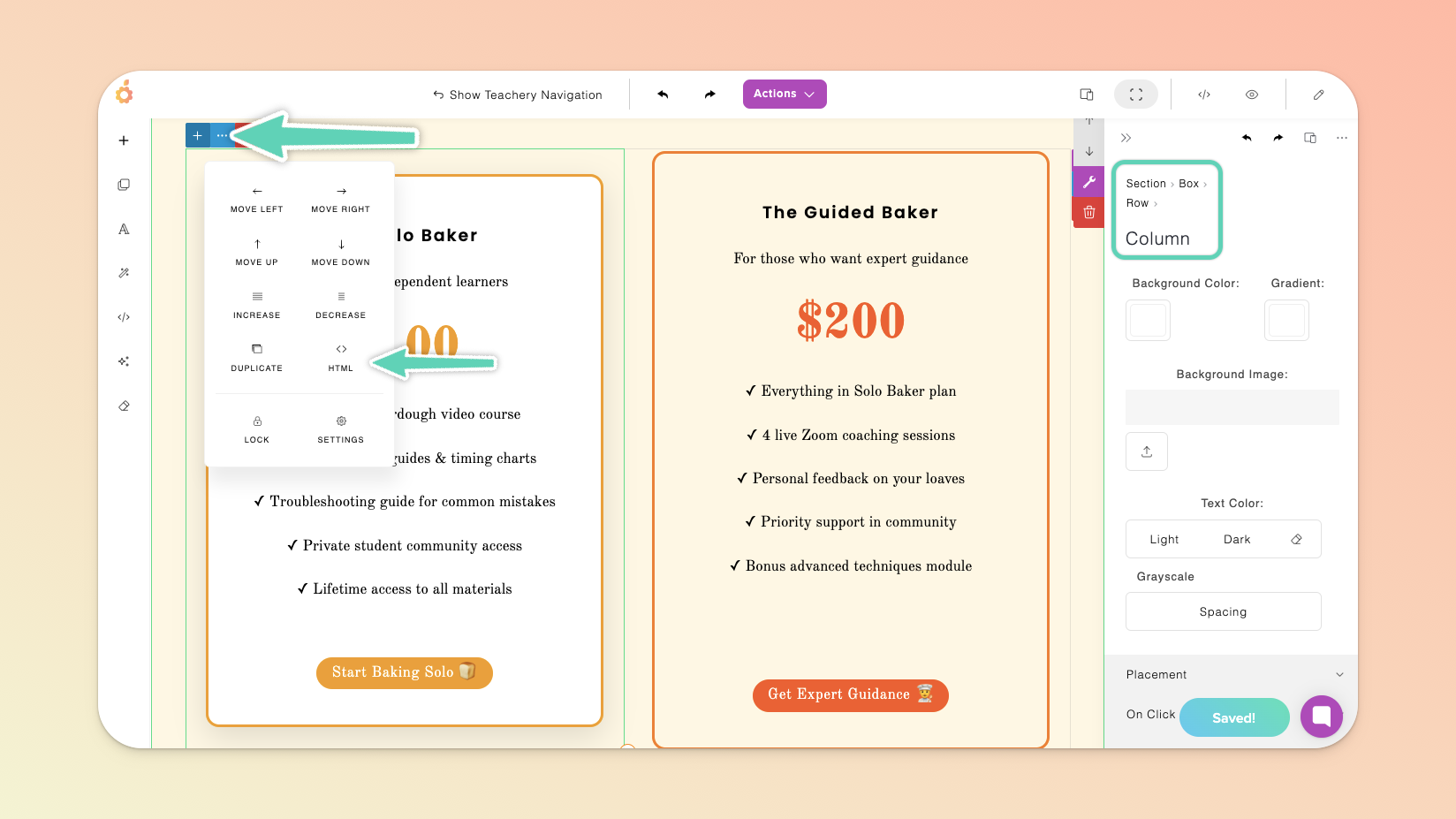 Google FontsAdding Google fonts in the page builder works a little differently to Teachery courses. We’re still refining this particular functionality of the page builder but, in the meantime, you can still introduce your own fonts (whether a Google or uploaded custom font) by inserting custom CSS in your page’s HTML code editor.