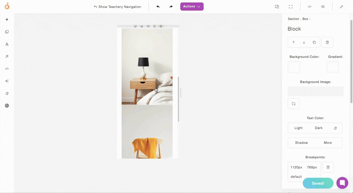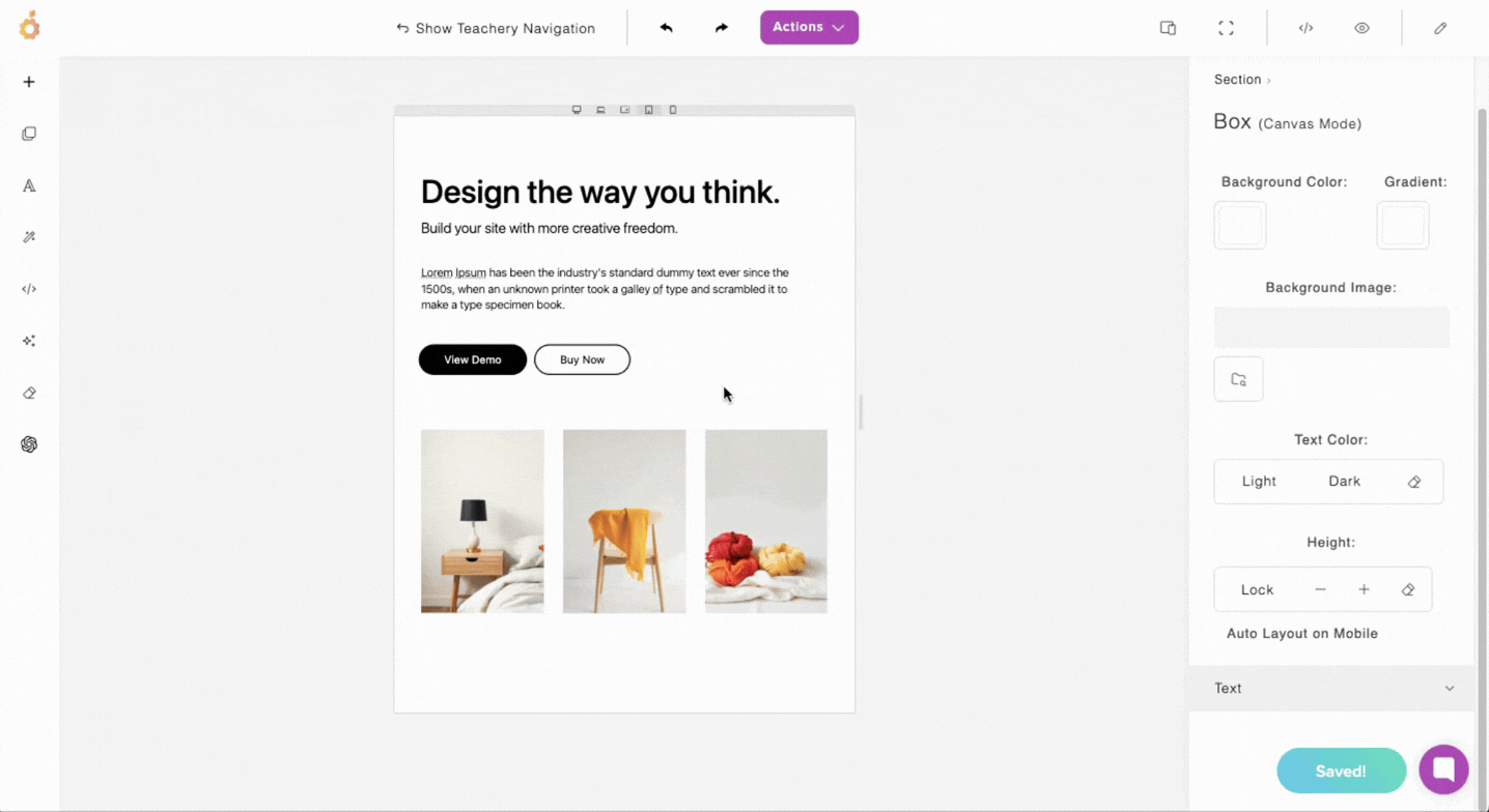 Again, we recommend keeping the Auto Layout on Mobile feature enabled (available in your Canvas section settings) which will permit the tool to automatically adjust your page for mobile devices. You can disable it however, if you don’t think the result renders well and you’d prefer to manipulate every element/block yourself.