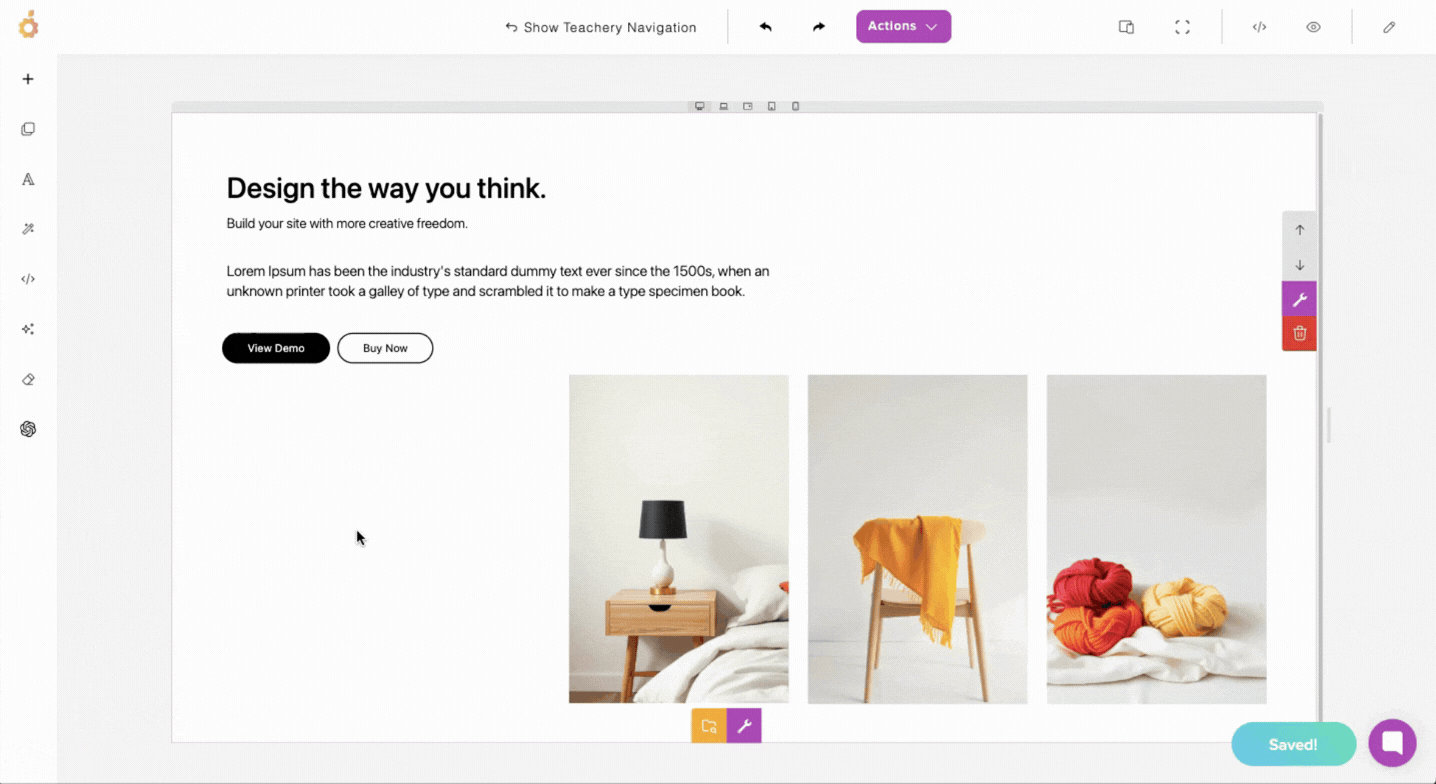 Back in the Teachery Page Builder, click the AI Assistant icon in the left sidebar menu and insert your API key and save.