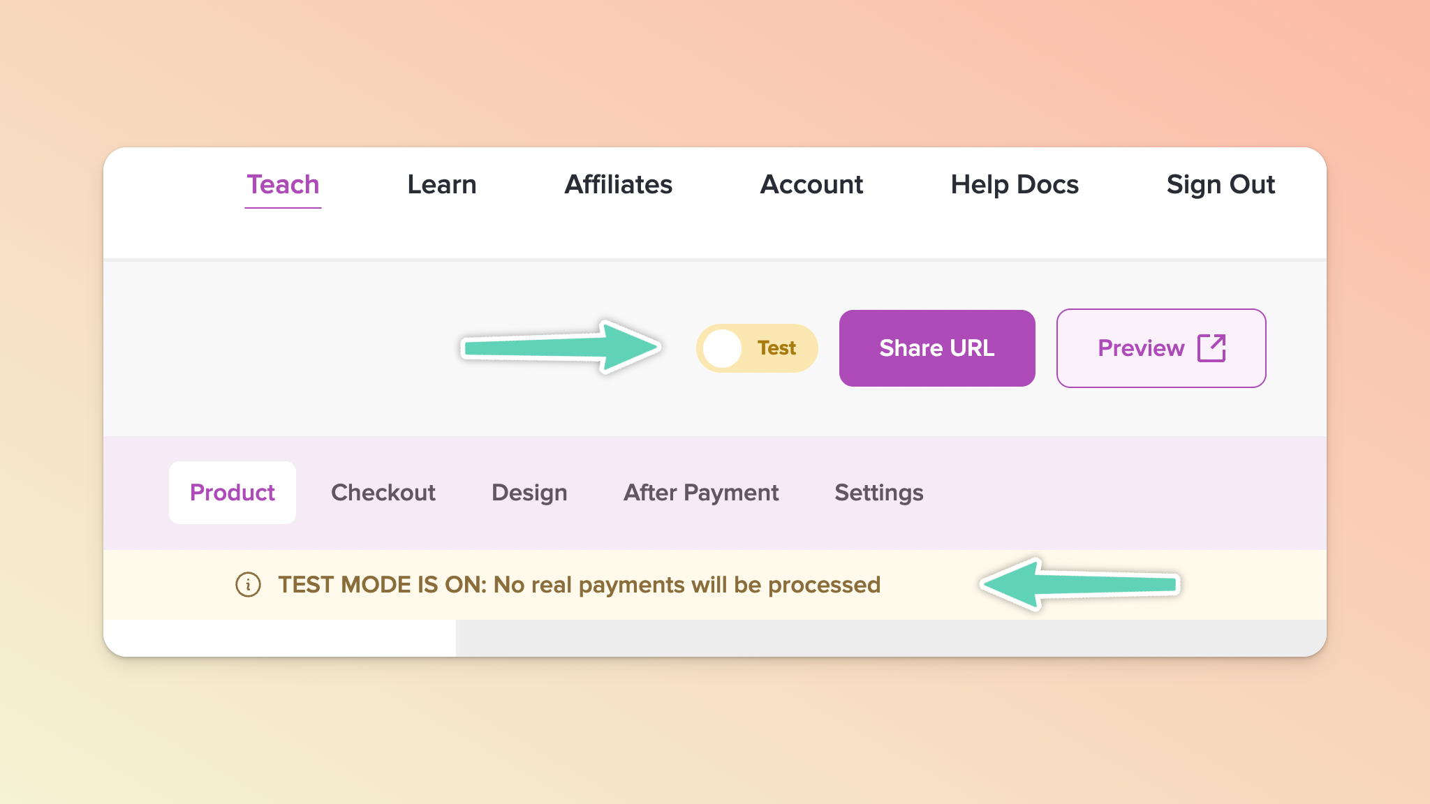 Despite offering Test Mode (see above), we still cannot stress this recommendation enough. If you want to see the exact experience your customers will have (and to ensure that taxes are being captured correctly or email provider integrations are working), making a real purchase of your own course will be useful. You, being the creator, will get to see both sides of the transaction and ensure everything is working as it should.