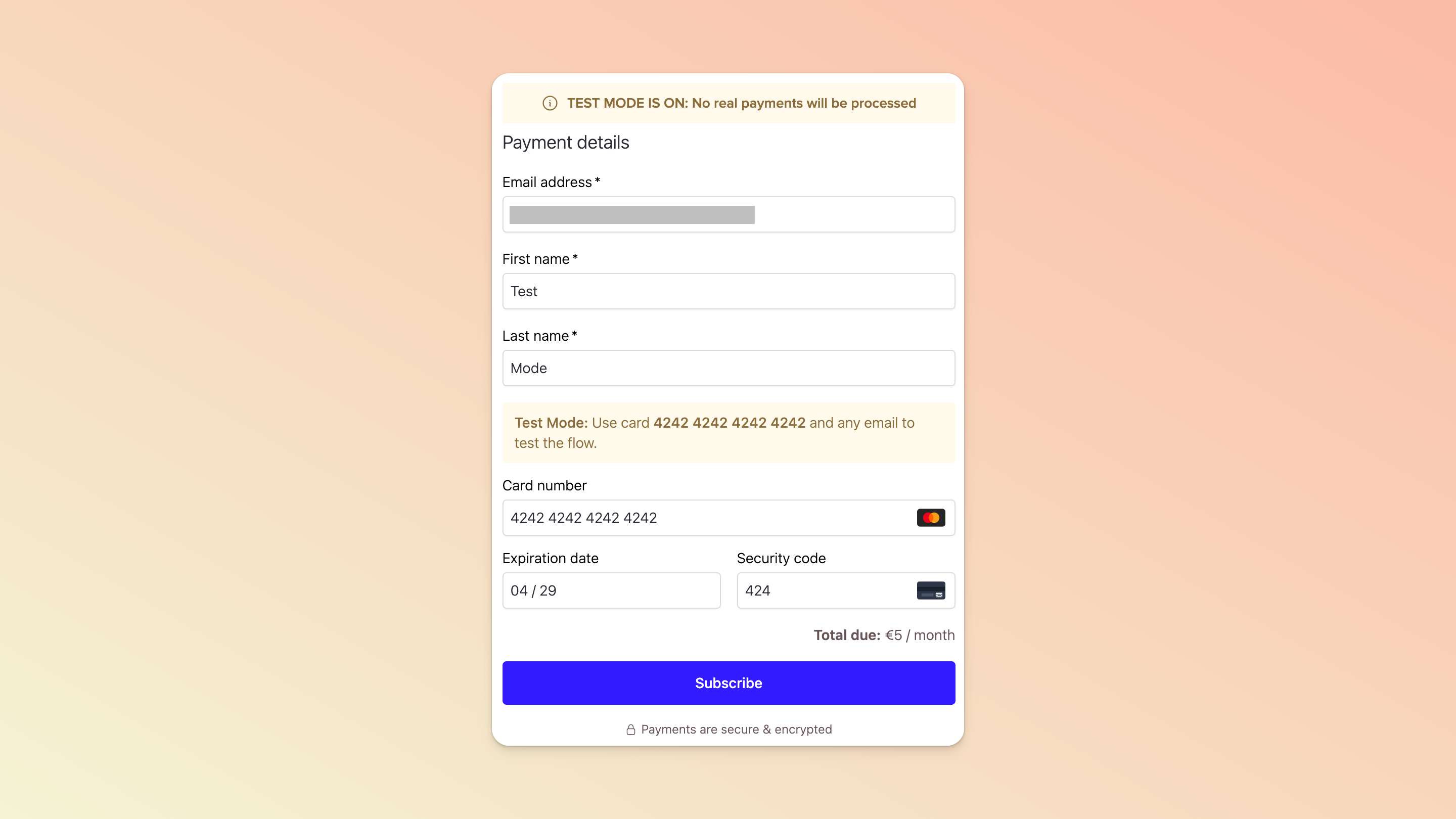 Put the payment page to the test (e.g. if you have multiple payment plans available, confirm the page reflects your selection) and complete the checkout