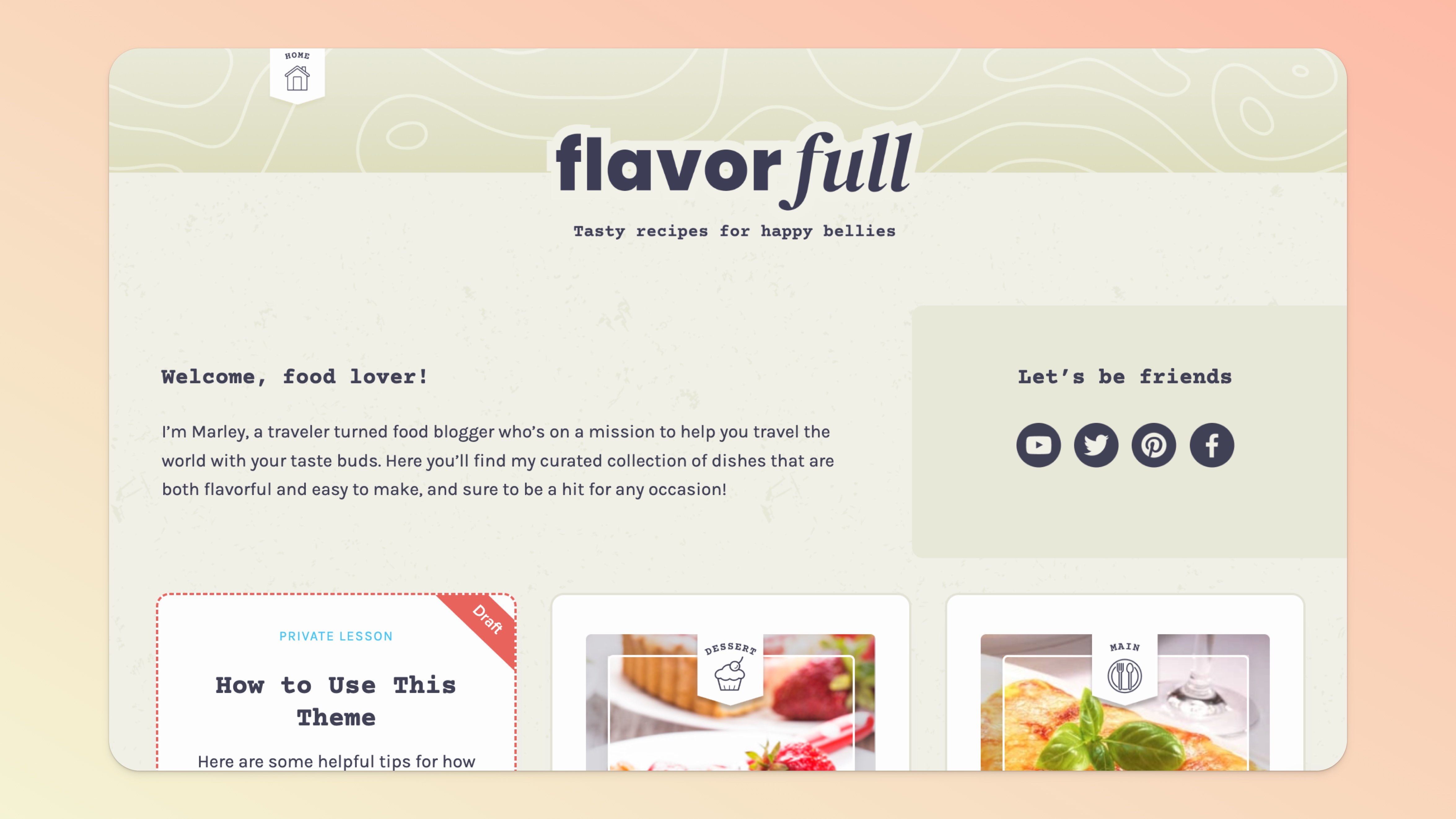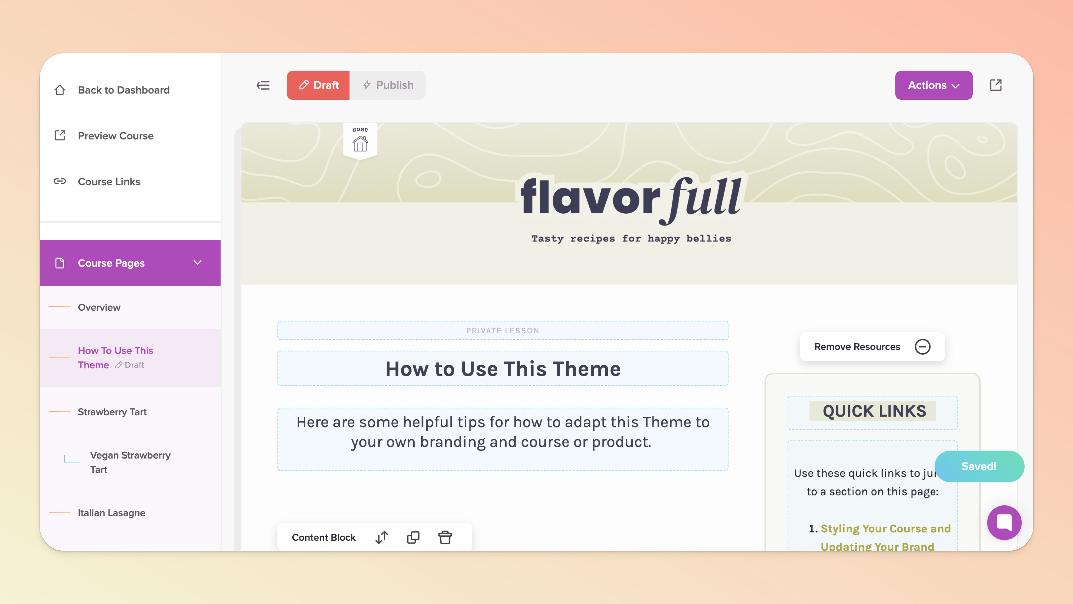 When you start using our pre-designed Themes, there's a DRAFT lesson waiting for you with step-by-step tips on how to customize the Theme to your liking.