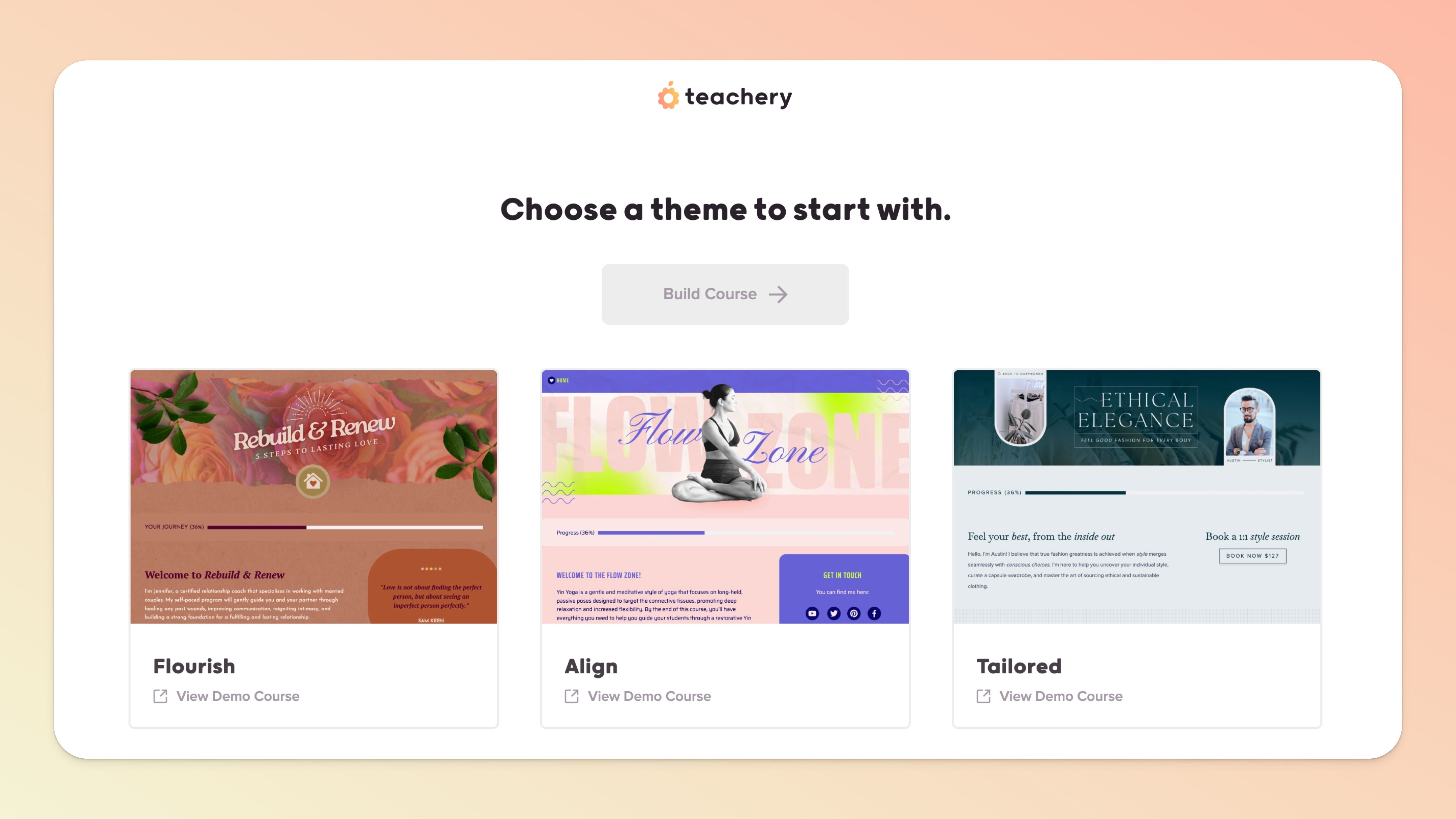 We recommend you use our Themes as inspiration to make your courses your own because customizing your courses to your individual brand is the whole reason you probably chose Teachery in the first place